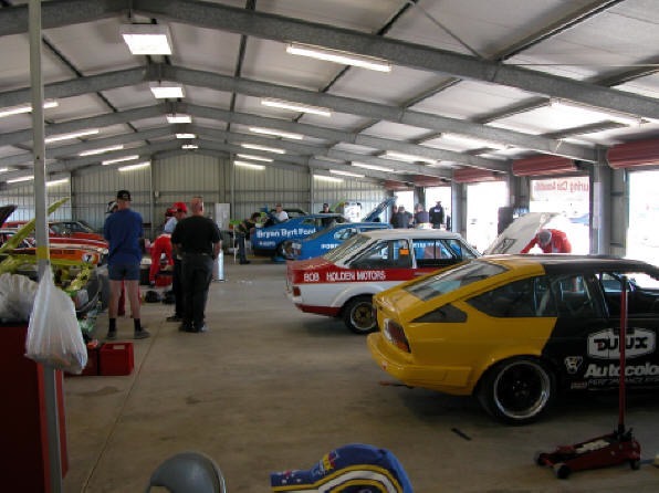 Above: The Group C Garage in Queesland. That’s legend Bob Holden next to me in the Escort and the big old BBF Falcon down the end.